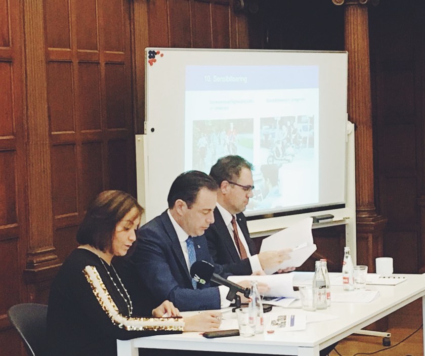 Burgemeester Bart De Wever, collegaschepen voor Mobiliteit Koen Kennis en ik stelden vandaag het nieuwe actieplan voor. Het omvat onder meer venstertijden voor vrachtwagens in zone 30, vaste vrachtwagenroutes doorheen de stad en het testen van vierkant groen op bepaalde kruispunten.