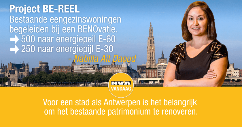 Voor een stad als Antwerpen is het belangrijk om het bestaande patrimonium te renoveren. Dat is een meerwaarde voor onze inwoners én voor het behalen van onze energie- en klimaatdoelstellingen. Een van de projecten die het EcoHuis hiervoor heeft lopen, is BE-REEL. Tegen eind 2024 wil dit Europees subsidieproject 500 bestaande eengezinswoningen begeleiden bij een BENOvatie naar energiepeil E-60 en 250 naar energiepijl E-30.