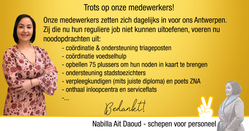 Kortom, ook onze medewekers zetten zich dagdagelijks belangeloos in voor ons Antwerpen! Zij zorgen er mee voor dat we deze gezondheidscrisis doorkomen, en daar ben ik ze heel dankbaar voor.