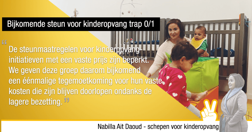 “Kinderopvang is een essentiële dienstverlening. Het zorgt ervoor dat ouders aan de slag kunnen en draagt bij tot de ontwikkeling en welzijn van baby’s en peuters. Nu we in Antwerpen vorige legislatuur eindelijk de Barcelona-norm gehaald hebben, willen we deze initiatieven ook het broodnodige duwtje in de rug geven zodat ze niet moeten sluiten omwille van de corona-problematiek.”