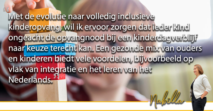 “Het einddoel van deze transitie binnen de kinderopvang naar een volledig inclusieve kinderopvang is om ervoor te zorgen dat ieder kind, ongeacht zijn of haar opvangnood, in een kinderopvanginitiatief naar keuze in onze stad terechtkan”, verduidelijkt schepen voor kinderopvang Nabilla Ait Daoud. “Het wegwerken van tussenschotten tussen de verschillende opvangnoden en opvanginitiatieven is een werk van lange adem, maar brengt heel wat voordelen met zich mee. Een gezonde mix van ouders en kinderen vergemakkelijkt immers de integratie en bevordert het leren van de Nederlandse taal. De kinderen kunnen bovendien terugvallen op een stabielere omgeving waarin vaker dezelfde kinderen aanwezig zijn. Maar ook voor de kinderopvanginitiatieven is een goede mix belangrijk. Denk maar aan stabielere inkomsten, een minder zware workload, hogere bezettingscijfers, …”